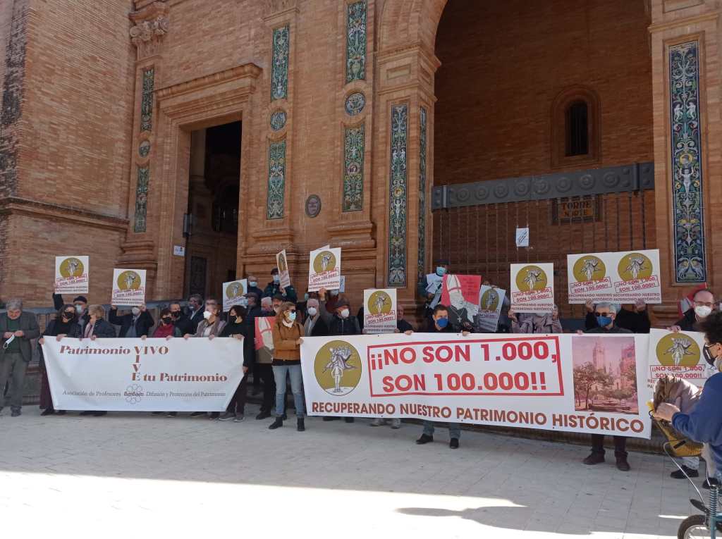 La ‘Plataforma en defensa del patrimonio de Sevilla’, junto a la Asociación Ben Baso, Sevilla Laica y diferentes organizaciones de cristianos de base, han celebrado hoy una concentración ante la Subdelegación del Gobierno en Sevilla