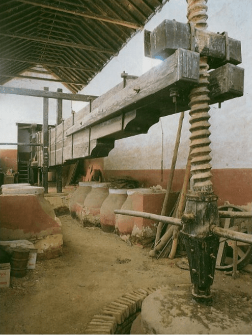 Con el objeto de hacer pedagogía patrimonialista, en la última fotografía puede observarse una prensa bien conservada, ubicada en la Hacienda Ibarburu, en Dos Hermanas.